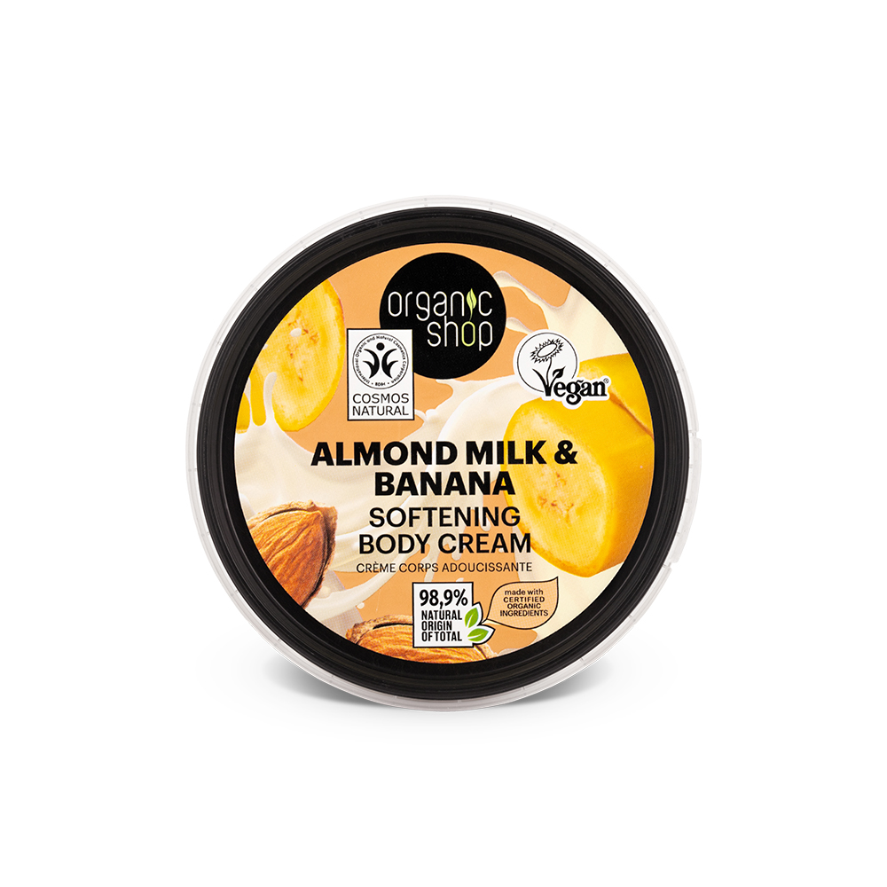 Experience the ultimate in skin softness with Almond Milk & Banana Softening Body Cream. This silky body cream is a harmonious fusion of nourishing almond milk and the sweet essence of ripe bananas. It