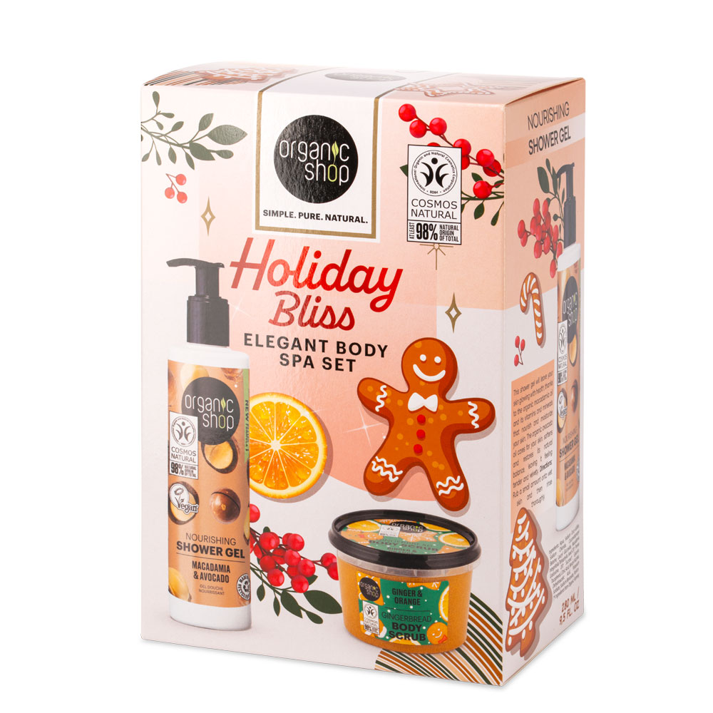 Get into the festive spirit with our Holiday Bliss. Elegant Body Spa Set featuring a delightful duo of indulgence! Treat your loved ones (or yourself) to the ultimate pampering experience with our gingerbread body scrub and macadamia-infused shower gel. Let the warm, comforting scents of the holidays envelop you while leaving your skin irresistibly soft and nourished. Perfect for spreading holiday cheer and relaxation all season long!